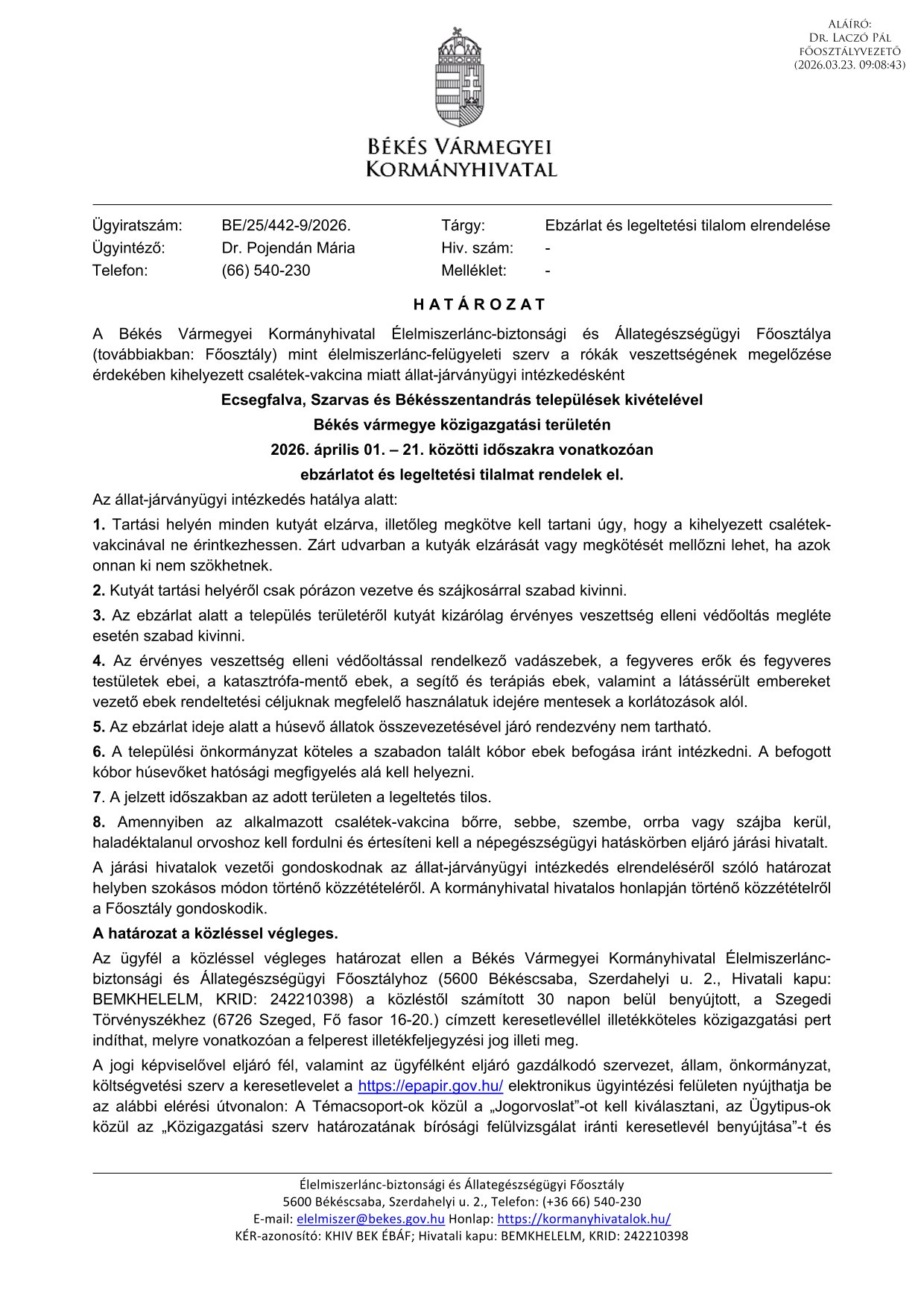Ebzárlat és legeltetési tilalom